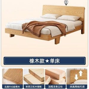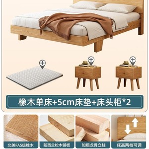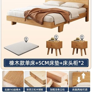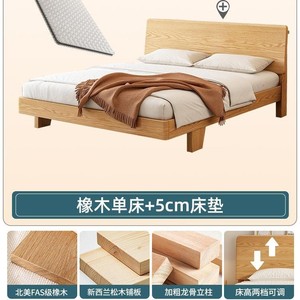 【橡木床】单床+5CM床垫【顺丰上楼入户】