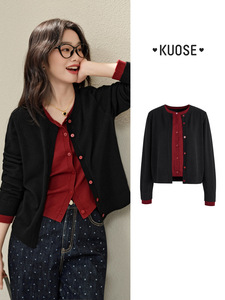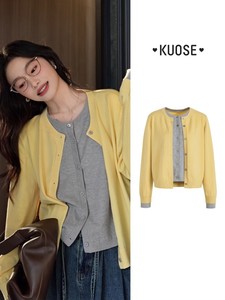 阔色假两件针织衫开衫外套毛衣女秋季新款内搭打底衫上衣春