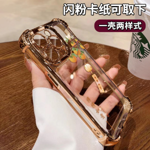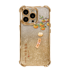 电镀防摔壳-透明金-柿柿如意+金渐变闪粉卡