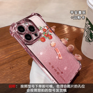 电镀防摔壳-樱花粉-平安喜乐+粉渐变闪粉卡