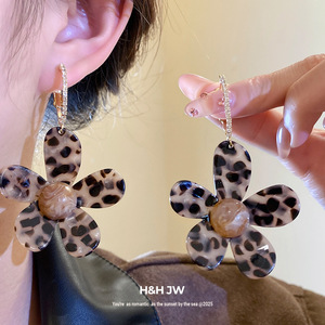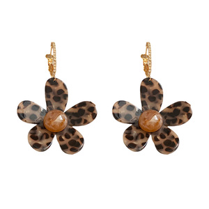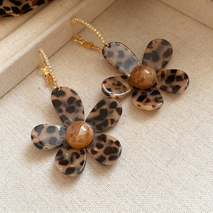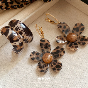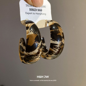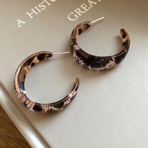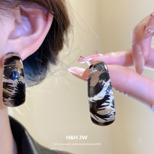 银针晕染豹纹C形耳环美拉德复古气质百搭耳钉轻奢高级感耳饰批发