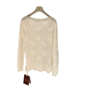 WGWE7350手工蕾丝刺绣上衣内搭外穿花边打底长袖针织衫