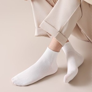 袜子男春秋款短筒袜纯色透气吸汗纯棉袜简约短袜休闲棉袜白色袜子