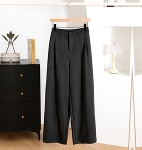 2025春秋季新款灰色毛呢阔腿裤女高腰宽松垂感显瘦西装直筒裤