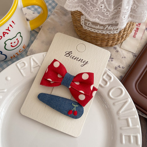 韩系红蓝波点蝴蝶结发夹甜酷时尚儿童发饰可爱kt猫发圈发卡头饰品