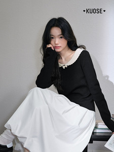 阔色黑色长袖针织衫内搭秋冬季新款女装黄色上衣毛衣打底衫