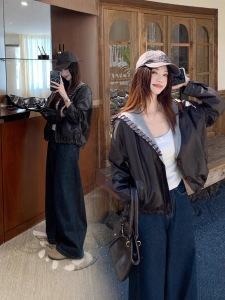 大码女装设计感海军领皮衣外套2025新款秋季韩版胖MM短款上衣