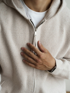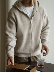 老钱风亲肤肌理感拉链连帽外套男士2025秋冬保暖休闲新款针织开衫