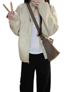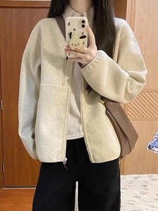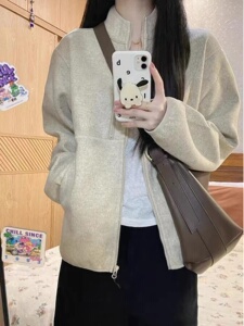 立领卫衣开衫外套美式复古毛呢夹克女春秋季2025新款宽松休闲百搭