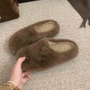 毛毛鞋女冬外穿懒人休闲包头半拖一脚蹬穆勒鞋加绒保暖棉鞋子