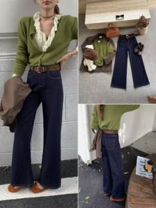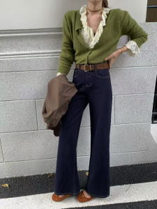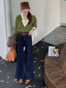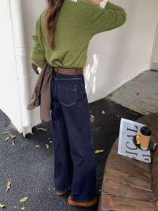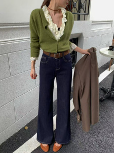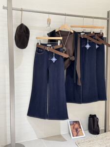 秋TOP欧制广州十三行糯米感四面弹显瘦韩版筒喇牛仔裤配腰带5758