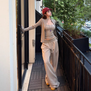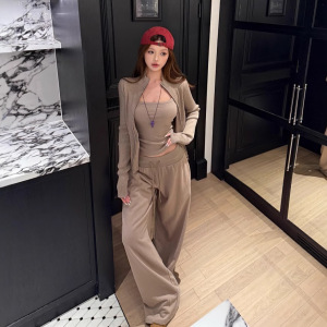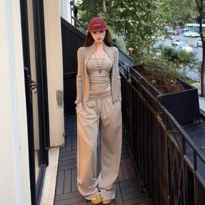 RHGD实拍2025 正肩开衫外套吊带背心女秋季休闲套装长裤三件套