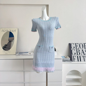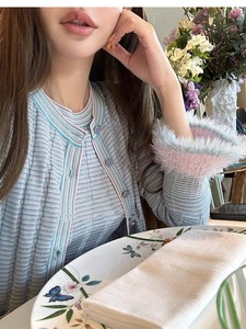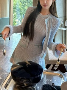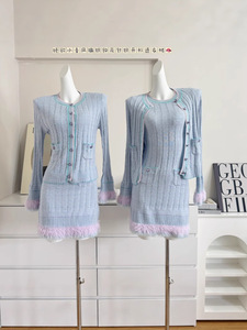 jennie蓝花楹温柔毛感拼接针织连衣裙+开衫外套女秋