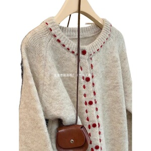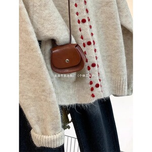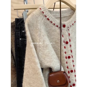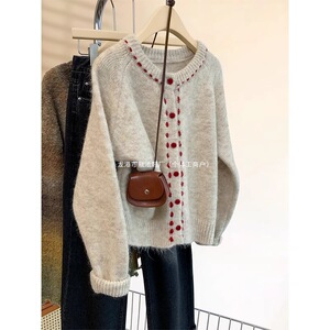 软糯加厚圆领毛衣外套女早春2025新款设计感外穿慵懒针织开衫上衣
