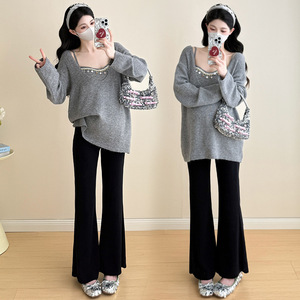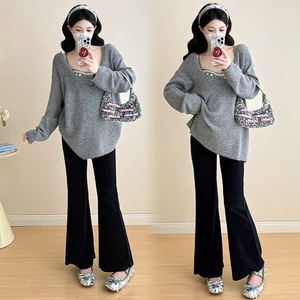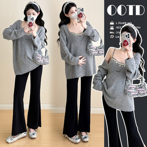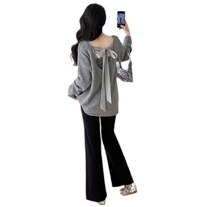 孕妇装蝴蝶结挂脖针织衫女2025秋季新款百搭孕妇上衣
