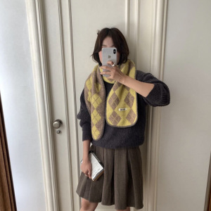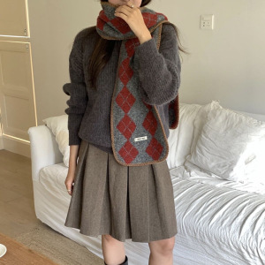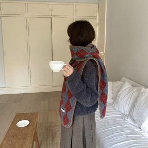韩国东大门同款包边格子围巾新ins氛围感围脖保暖复古情侣披肩厚