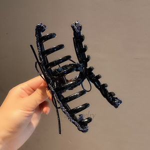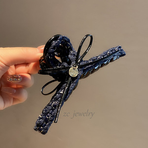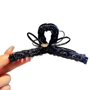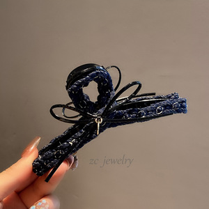 韩版东大门复古牛仔链条蝴蝶结抓夹女高级感时尚气质后脑勺鲨鱼夹