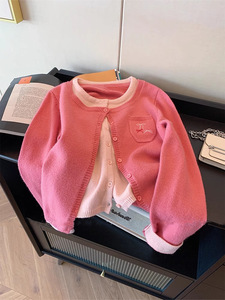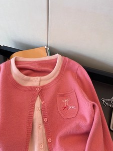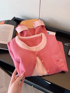 美到词穷!甜美软糯拼接假两件针织开衫外套女秋季韩系小个子穿搭