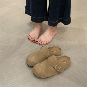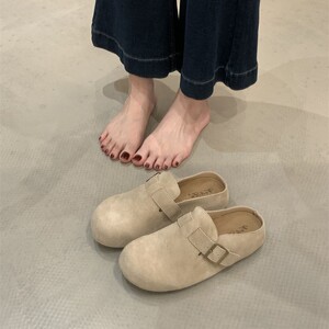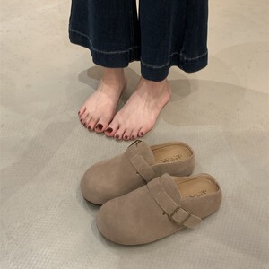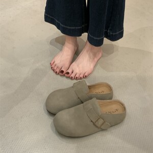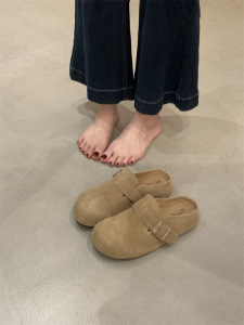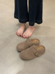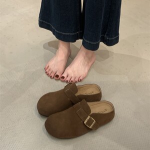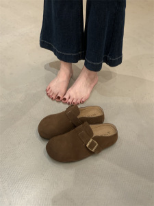 懒人推荐~厚底包头半拖女2025秋小个子增高复古皮带扣勃肯鞋