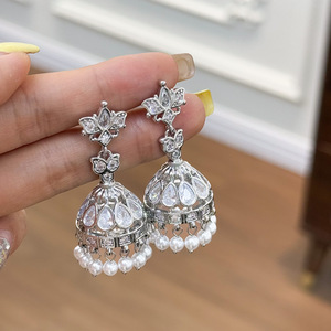 秋冬新款法式复古流苏锆石珍珠耳环时尚轻奢高级感925银针耳饰女