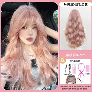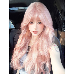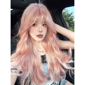 假发女长卷发蜜桃粉甜美自然蓬松氛围感气质lolita水波纹全头套