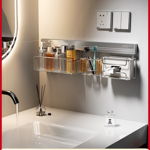 不锈钢浴室置物架卫生间墙上免打孔洗手池洗漱台吹风机牙刷壁挂篮