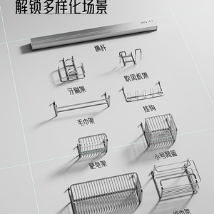 【60cm铝横杆】牙刷架+吹风机架+置物架大号