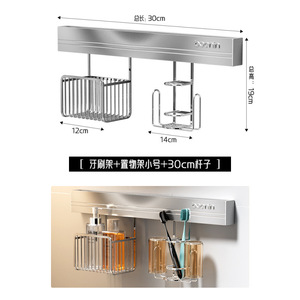 【30cm铝横杆】牙刷架+置物架小号