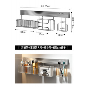 【65cm铝横杆】牙刷架+置物架大号+纸巾架