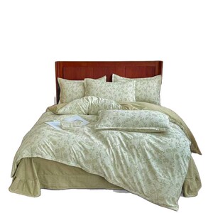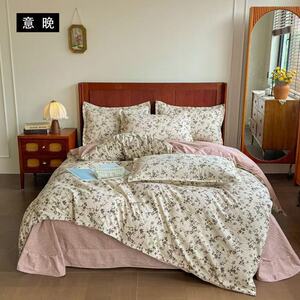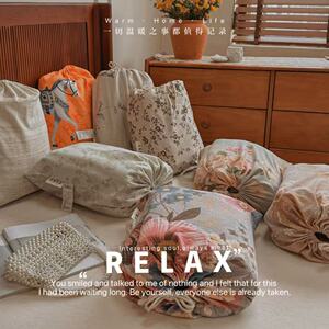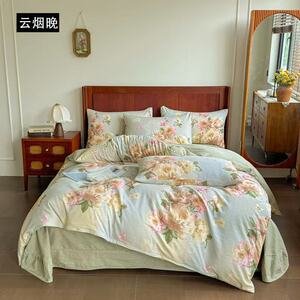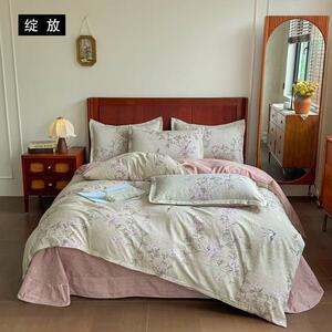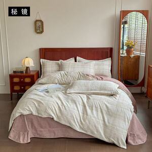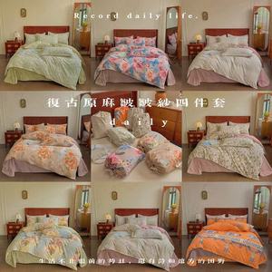 加厚高克重复古仿原麻皱皱纱四件套小布袋床上用品双人印花套件