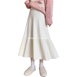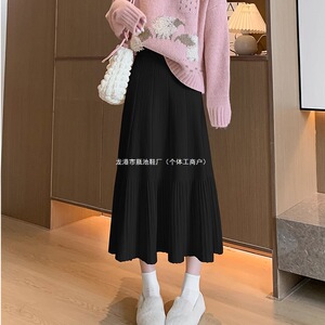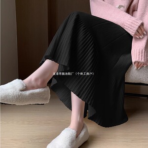针织百褶半身裙女秋冬2025新款小个子高腰显瘦中长款a字伞裙长裙