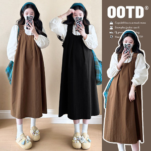 孕妇装连衣裙春秋2025新款背带裙上衣套装孕期法式穿搭秋季时尚款