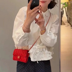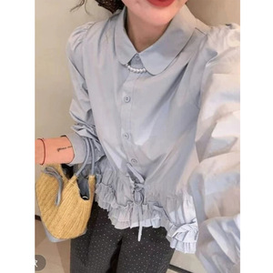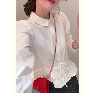 韩系甜美白色娃娃领衬衫女2025春秋新款短款显瘦百搭减龄长袖上衣
