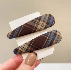 AhuaAhuaya韩系甜美复古少女心咖色格纹水滴BB夹缪风时尚百搭发夹