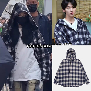 Stray李旻浩 迪丽热巴2025秋冬连帽格子衬衫女慵懒风休闲宽松上衣