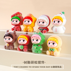 2025新款树脂潮玩车载办公室桌面摆件钥匙扣挂件植绒库库圣诞萌粒