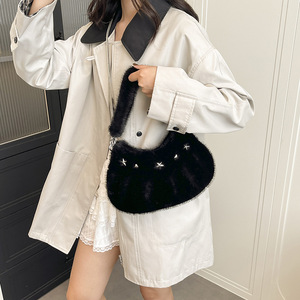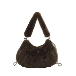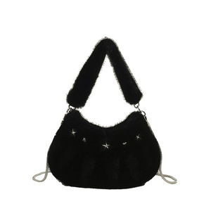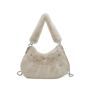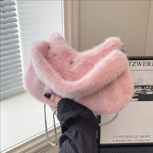 清新甜美毛毛手提腋下包你2025冬新款毛绒绒链条单肩包百搭斜挎包