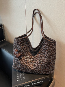 秋冬季大容量豹纹包包女2025新款通勤百搭单肩包大学生外出托特包