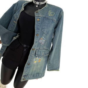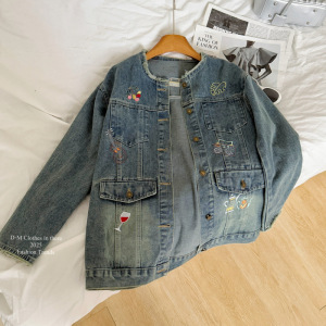 塞纳绣花牛仔外套女2025秋季新款复古圆领休闲宽松上衣