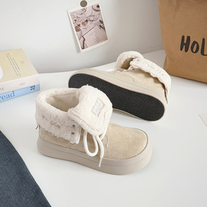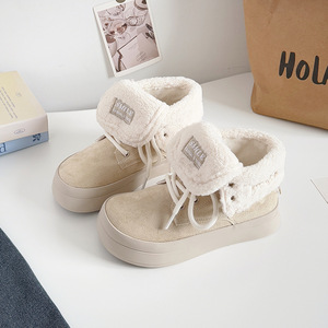 棉靴加绒毛毛靴系带短靴2025新款厚底磨砂雪地靴马丁靴女BE-6912