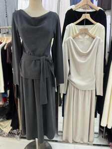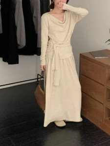 2025秋冬新款针织套装女装跨境慵懒风套头褶皱收腰半裙两件套