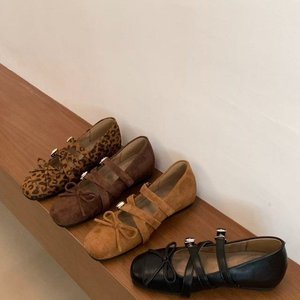 内增高复古圆头豹纹单鞋女秋季款小众设计法式玛丽珍女鞋芭蕾舞鞋