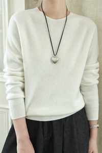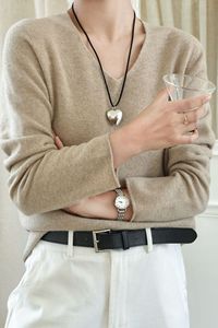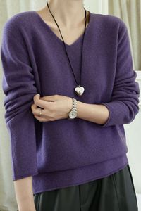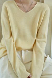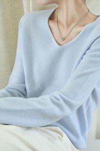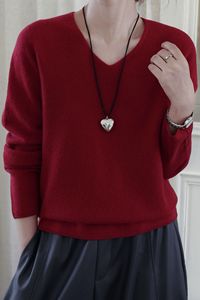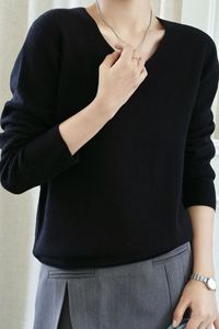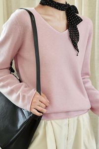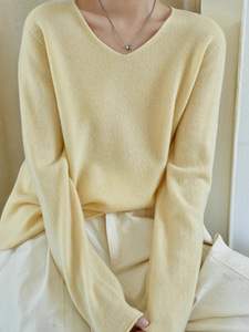 女式羊毛衫V领羊绒羊毛衫女上衣慵懒宽松长袖套头针织打底衫毛衣