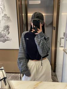 alo秋季新款插肩袖格子短款抽绳卫衣 25秋天 气质优雅风女款上衣