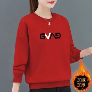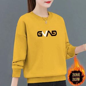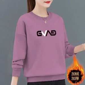 加绒加厚新款妈妈减龄洋气韩版宽松卫衣女秋冬无帽套头外套上衣潮