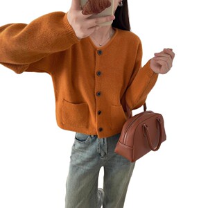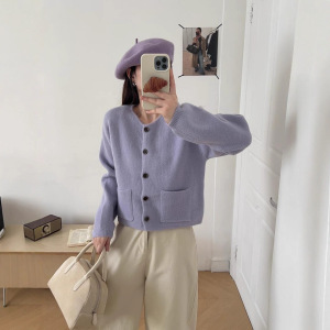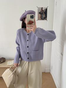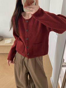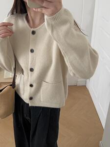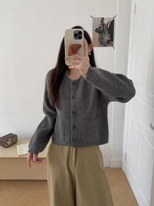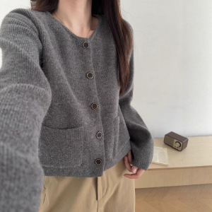 小个子简约双口袋针织开衫女2025秋新款韩版休闲百搭单排扣毛衣