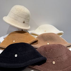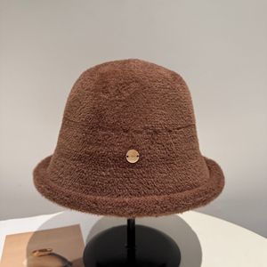 秋冬新款针织盆帽女时尚休闲渔夫帽仿貂绒毛绒帽子卷边保暖护耳帽