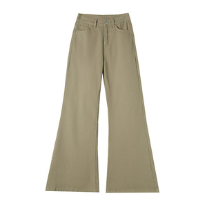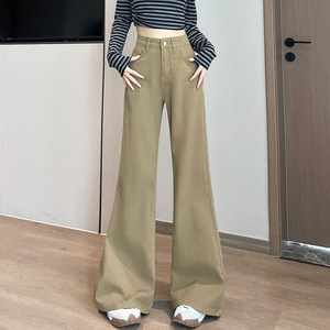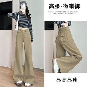 卡其色工装微喇牛仔裤女2025高腰宽松显瘦弹力不贴腿喇叭休闲裤子