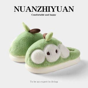 2025新款卡通苹果毛毛拖鞋女秋冬季室内家用保暖情侣毛绒拖鞋