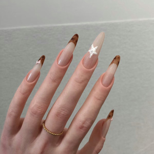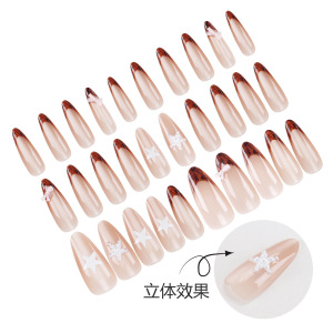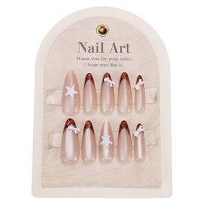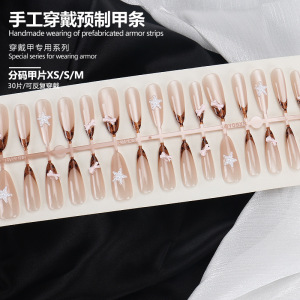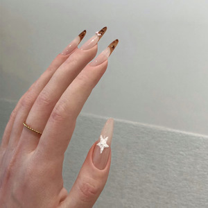美甲穿戴甲奶茶色渐变珍珠海星豹纹蝴蝶结装饰ins风显白指甲贴片